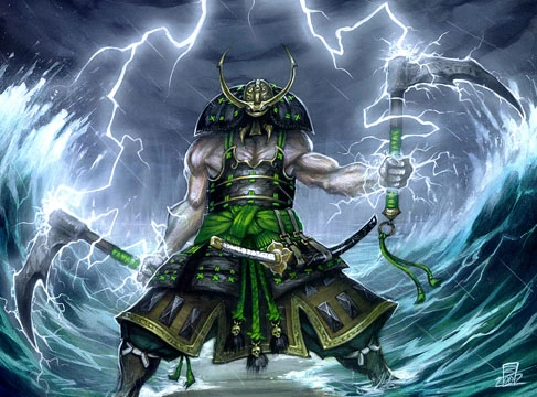I lampi illuminarono il percorso agli attaccanti, mentre il vento sferzava le facce ed accecava i difensori. Nonostante gli Isawa invocassero gli spiriti dell’Aria e dell’Acqua, nessuna magia a loro disposizione fu in grado di disperdere la possente tempesta. Gli uomini di Kaimetsu-uo sbarcarono sulla spiaggia e si addentrarono senza paura verso le mura incantate del palazzo.Nonostante le intemperie, le Fenici lanciarono alla cieca saette di fiamma e dardi di roccia verso l’esercito che avanzava. I seguaci di Kaimetsu-uo morirono senza emettere un suono, mentre seguivano il loro Signore in silenzio. Nessun rumore tradiva la loro posizione.